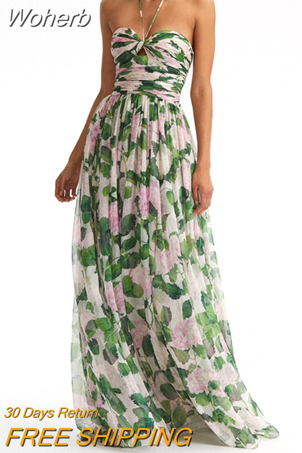 Woherb Casual Long Dress For Women Halter Sleeveless High Waist Hit Color Patchwork Print Slim Dresses Female Summer Clothing Style-Outfit Ideas
