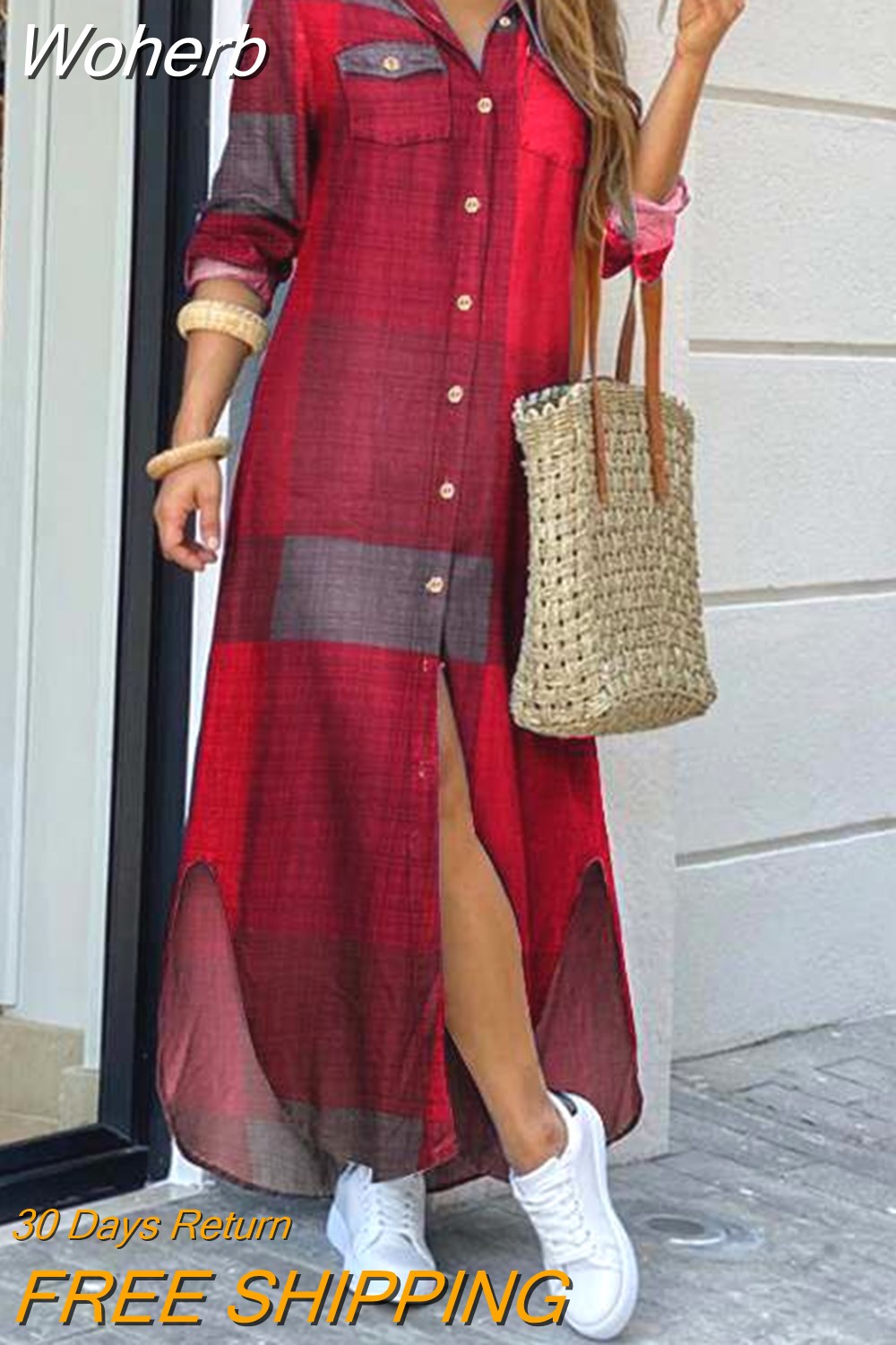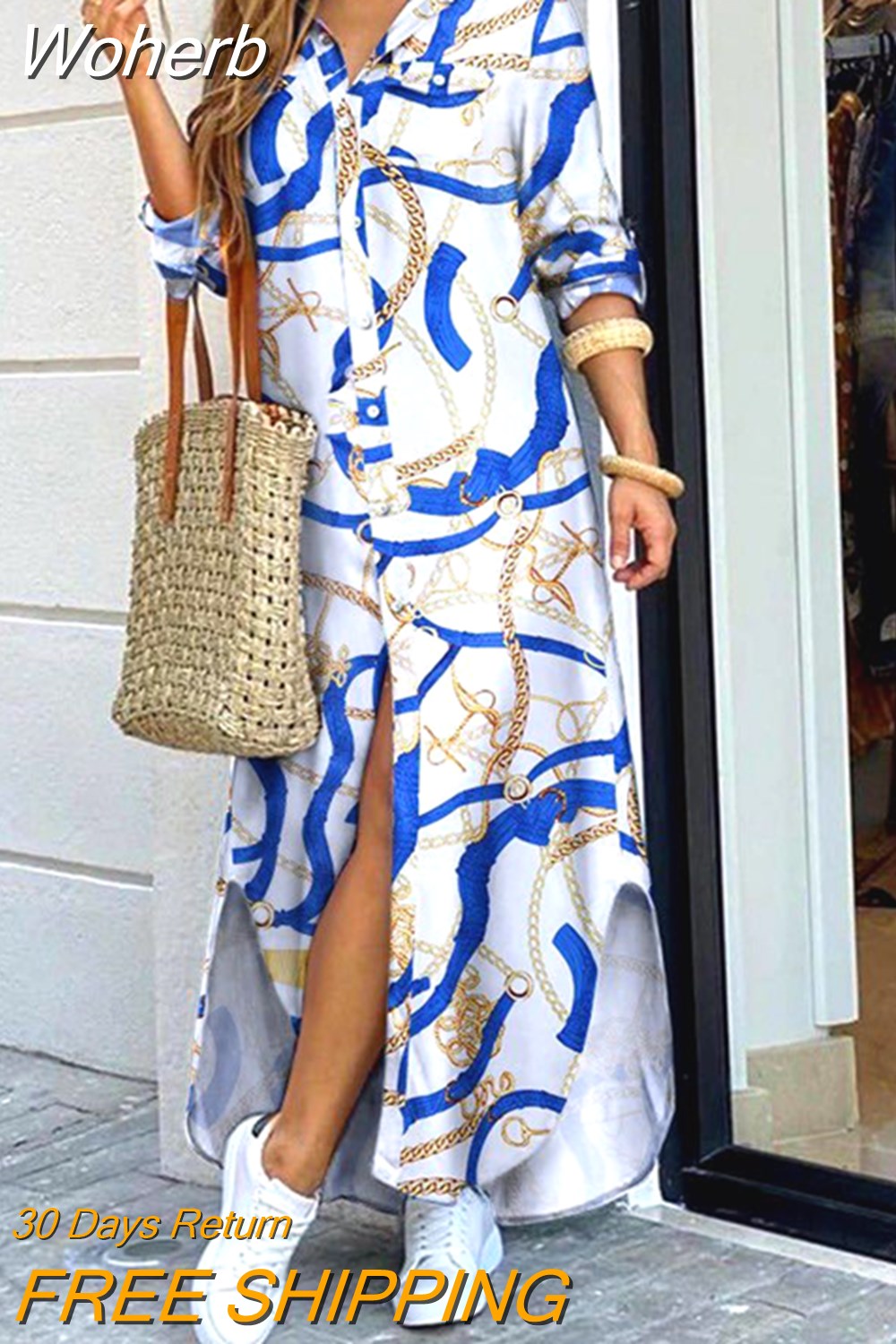 Woherb Dresses for Women S~5xl Scarf Chain Print Button Down Shirt Dress Y2k Vestidos De Mujer Casual Elegant Midi Robe Female-Outfit Ideas
