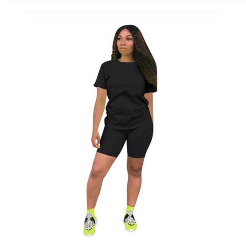 2 Pcs Sports Suit Sexy Candy Color Women Sport Clothing Short Sleeve Crew Neck T-shirt + Tight-fitting Shorts Tracksuit Outfits