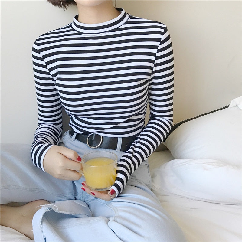 2019 Korean Style Long Sleeve T Shirts Women New Hot Sale Student T-shirt Womens Fashion Harajuku Striped Female Slim Femme Lady
