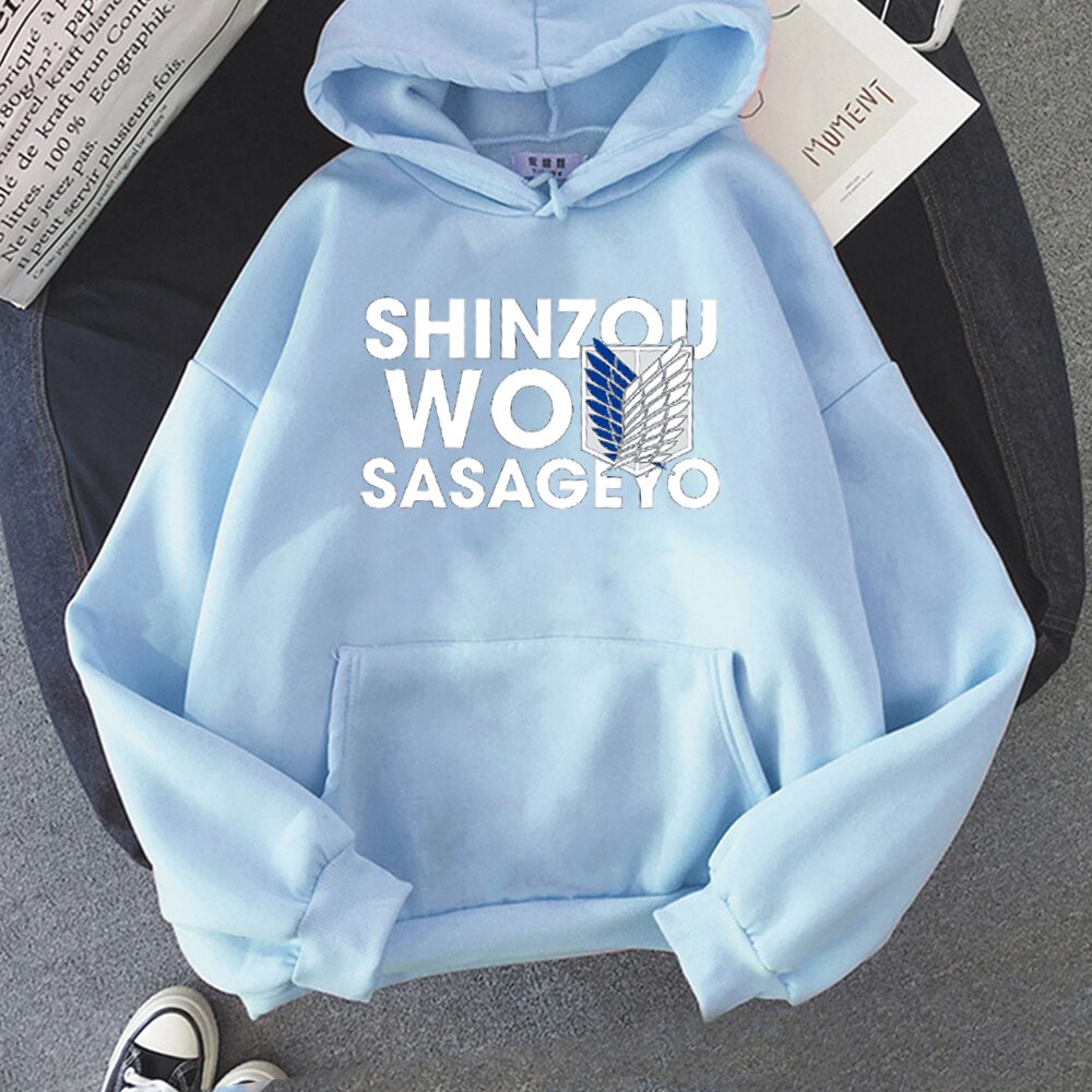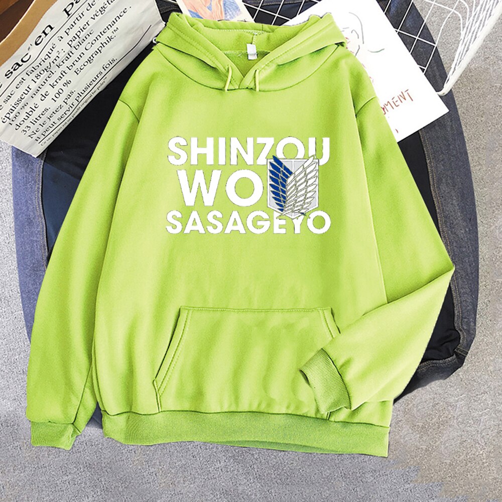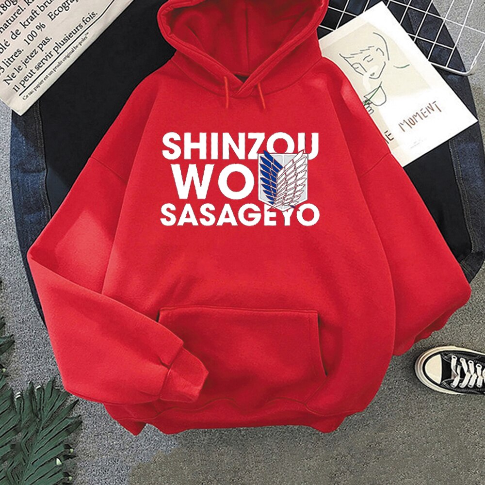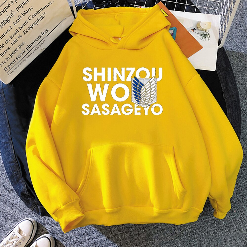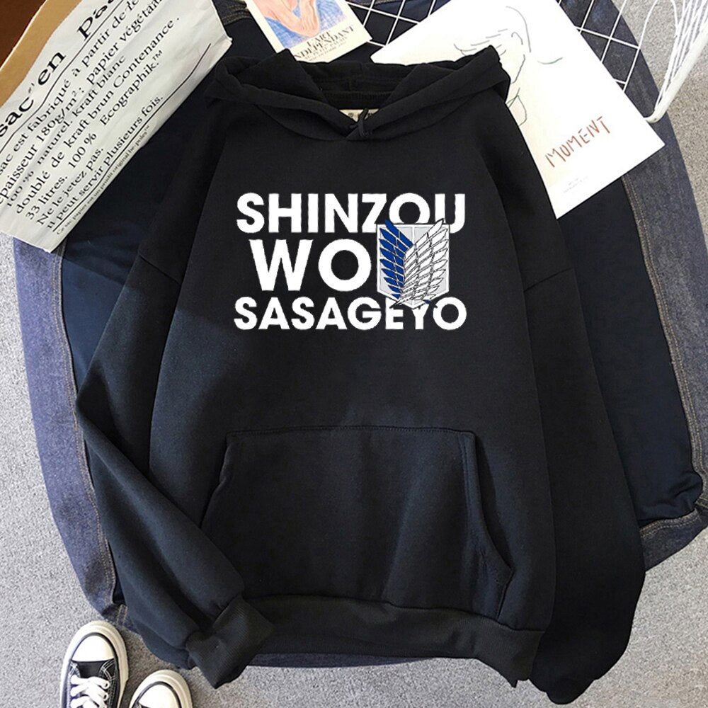 Attack on Titan Hoodies Harajuku Hoodies Womens Men Hip Hop  SHINZOU WO SASAGEYO Print Sweatshirt Hip Hop Unisex Streetwear