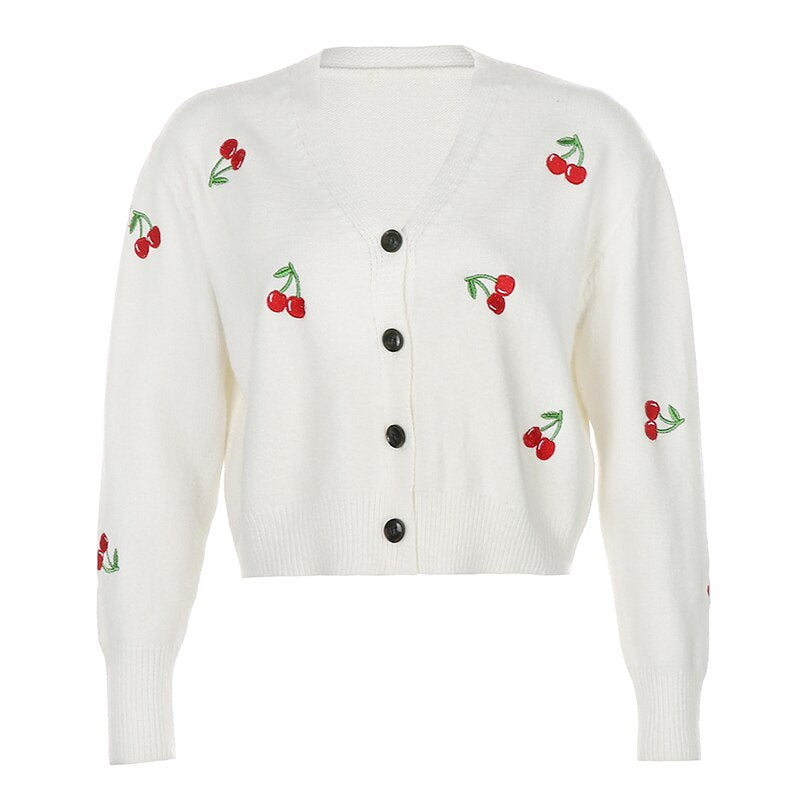 Autumn Cute Knitted Cardigan Women Oversized Sweaters Retro Embroidery Chic Graphic 90s Tops Buttoned Cardigans Cuteandpsycho