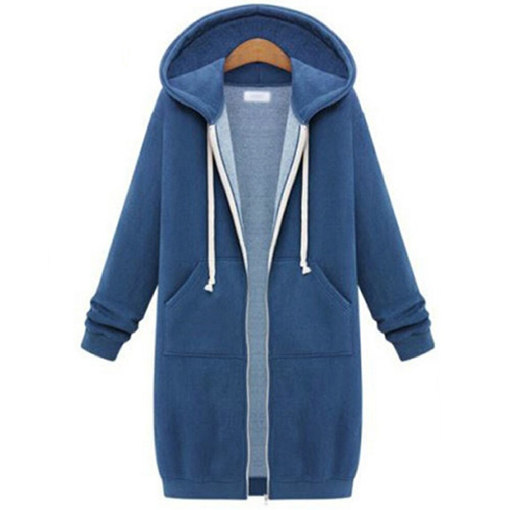 Autumn Women's Long Hoodies Casual Pockets Zipper Sweatshirt Plus Size Long Sleeve Female Hooded Jacket Outerwear Sudadera Mujer