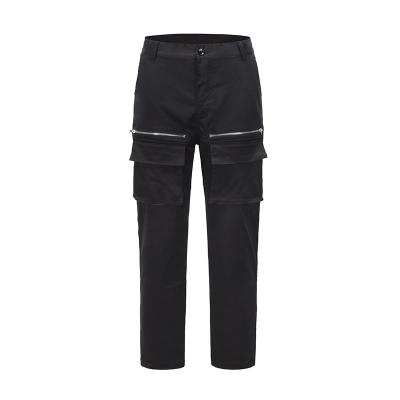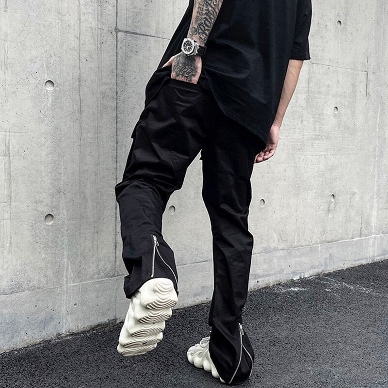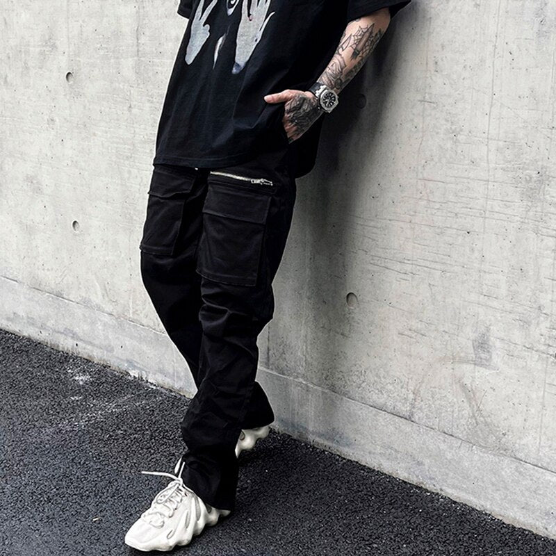 Back Ankle Zipper Pockets Cargo Pants for Mens High Street Drawstring Straight Black Overalls Oversize Loose Casual Trousers