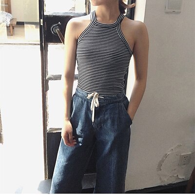 Basic Solid T shirts Women Slim Halter Neck Off-shoulder Camisole Tops Tees Summer Female Tanks Sleeveless