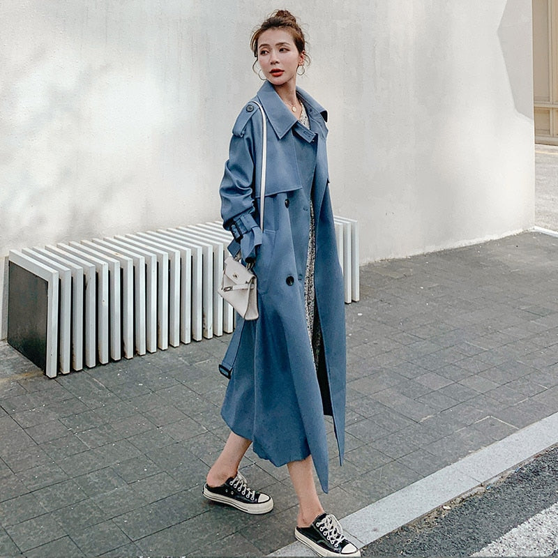 Brand New Fashion Women Trench Coat Beige Long Double-Breasted with Belt Spring Autumn Lady Duster Coat Female Outerwear Quality