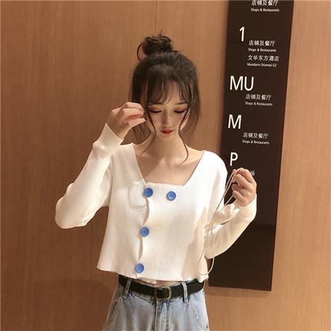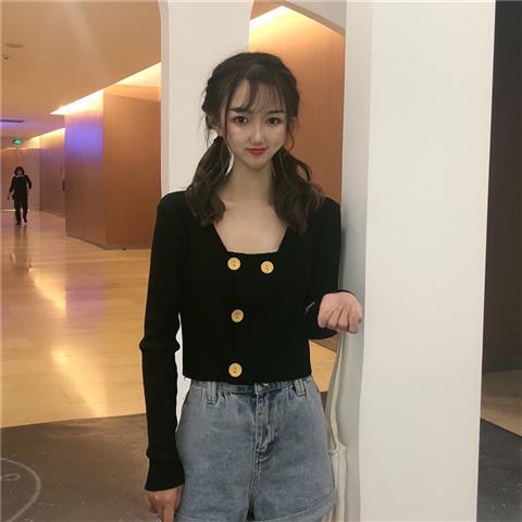 Cardigan Women Square Collar Clavicle Solid Trendy Knitted Korean Style Short Casual Student Sweet Chic Sweater All-match Autumn