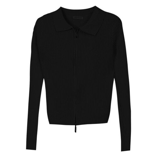 cardigans Women Slim Zipper Turn-down Collar Simple Elegant Vintage Sweaters Knitted Girls Korean Chic Fashion Casual All-match