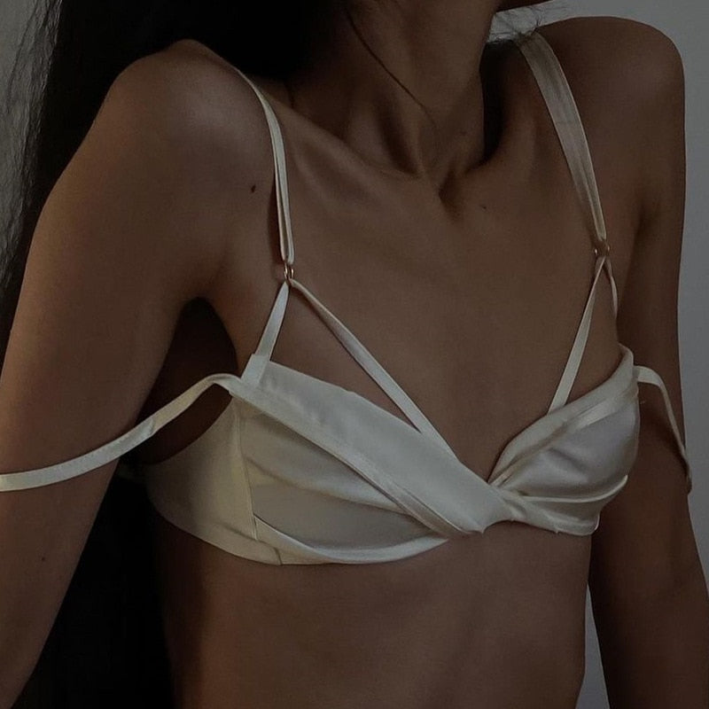 Cryptographic 2021 Summer Chic Fashion Camis Wrap Crop Tops Women Elegant Sleeveless Backless Top Cropped Club Party Clothes