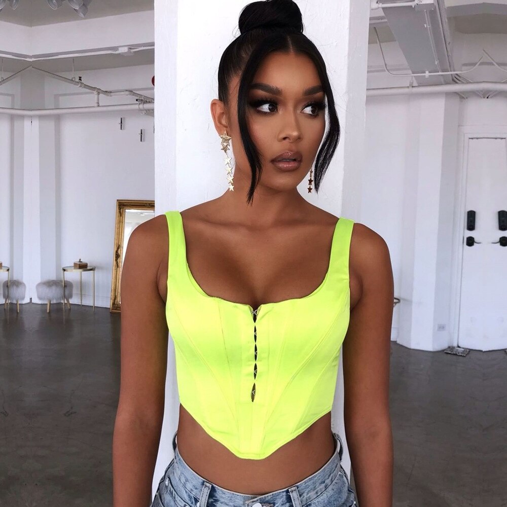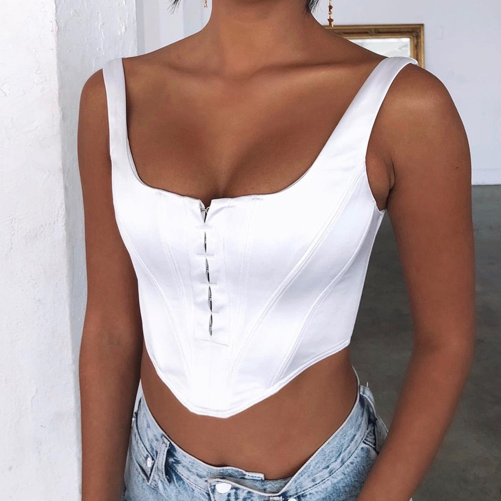 Cryptographic Satin Fashion Rave Festival Sleeveless Summer Bustier Crop Tops for Women Sexy Backless Corset Top Cropped Solid