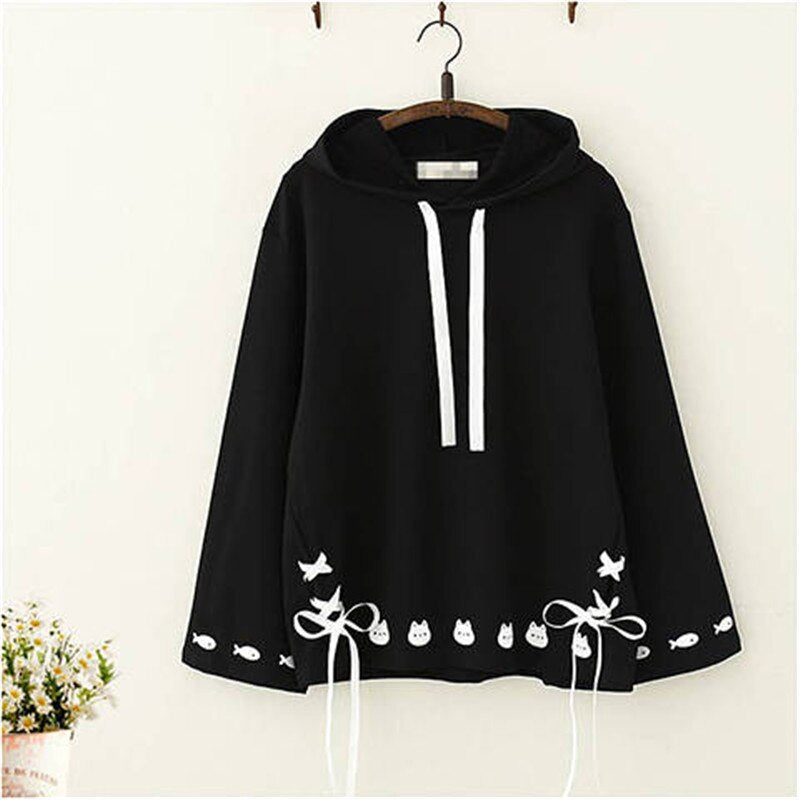 Cute Autumn Hoodies Streetwear Women Japanese Harajuku Sweatshirt Kawaii Female Tops Shirts Loose Cat Print Swearshirt Girls