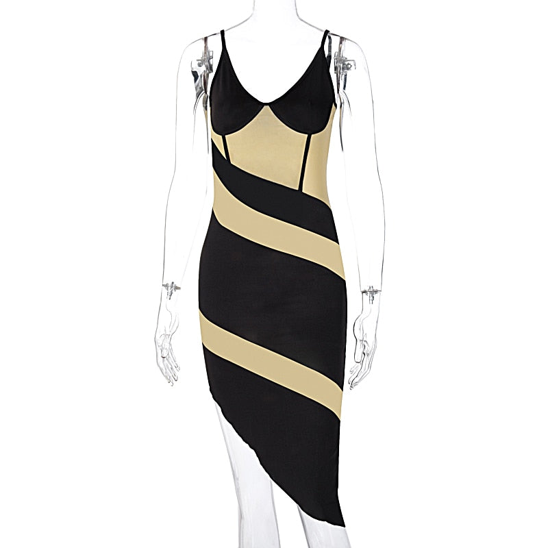 Dulzura Mesh Patchwork Women Mini Dress Strap V Neck Bodycon Sexy Streetwear 2020 Autumn Winter Party Club See Through Sheer