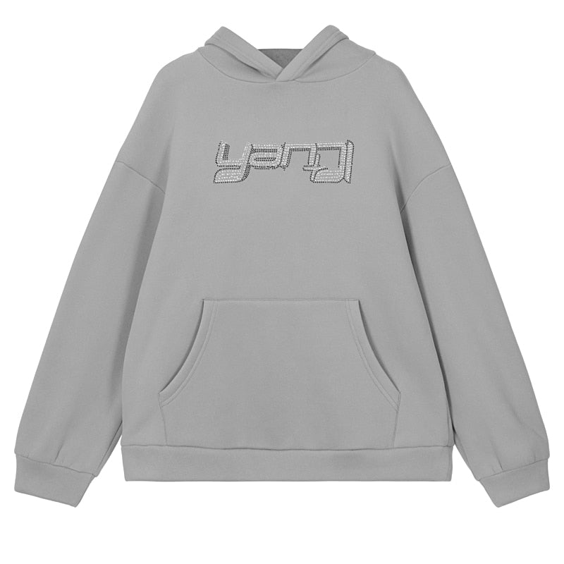 Dulzura Rhinestone Letter Women Long Sleeve Sweatshirt Thick Hoodie Pullover Loose Casual Warm Streetwear 2021 Spring Summer
