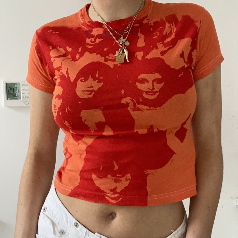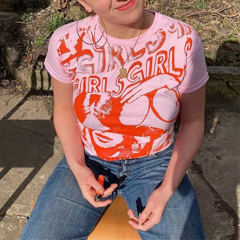 E-girl Harajuku Graphic Print T-shirt 90s Women Vintage Crop Top Y2K Aesthetic Summer Slim Fit Tees Tops Streetwear Gothic Punk