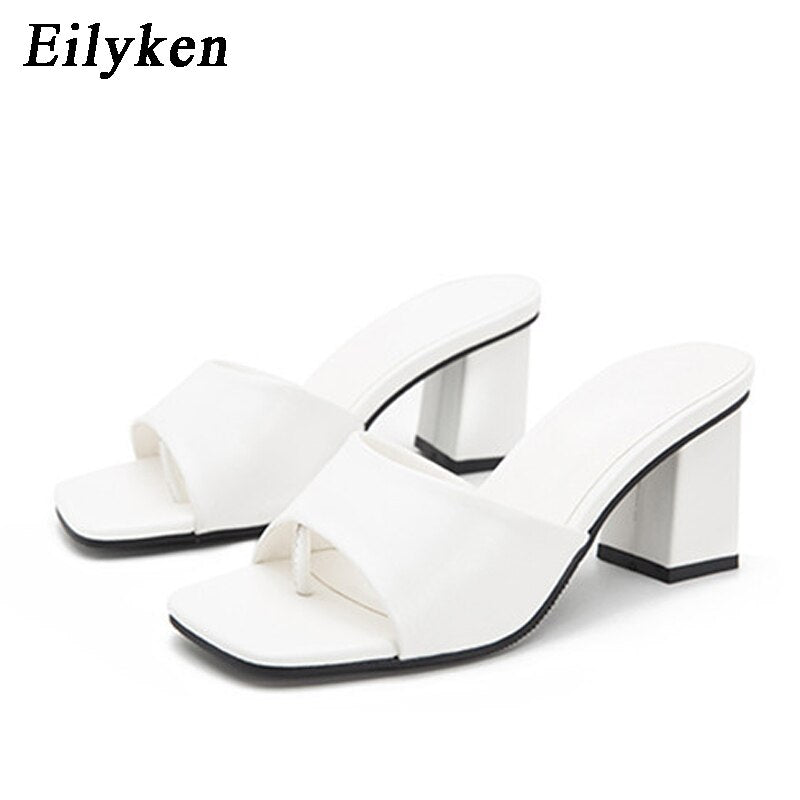 Eilyken 2021 New Women Slipper Summer Outdoor Sandal Square High Heel Slip On Flip Flop Elegant Women Slides Sandal size 41 42