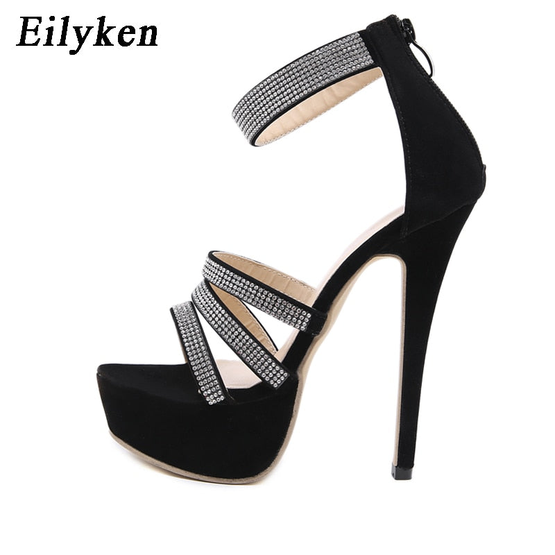 Eilyken Crystal Platform Sandals Women Summer Zip High Heels Shoes Fashion Peep Toe Slides Zapatos Mujer Black Hollow Pumps