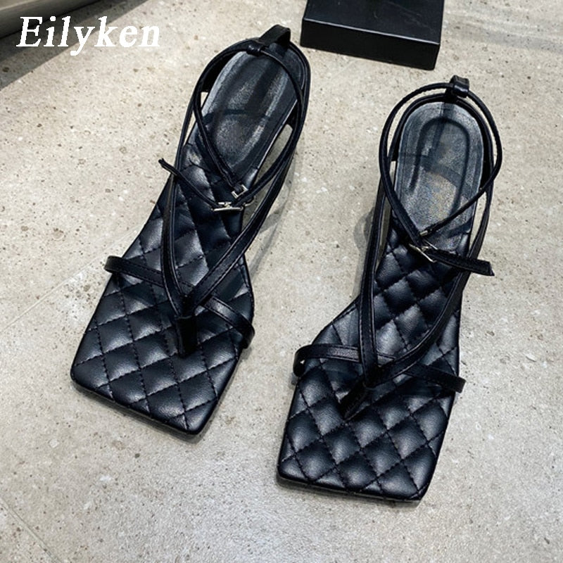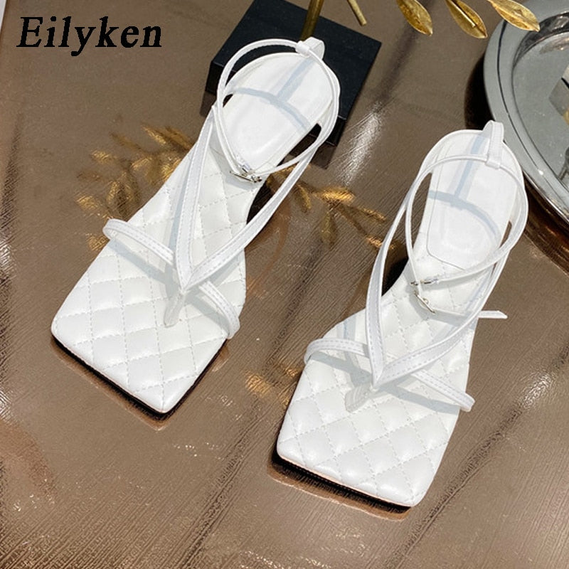 Eilyken Gladiator Sandals High Heels Sandal Shoes Fashion Brand Strap Flip Flops Sexy Thin High Heel Pumps Square Toe Shoes