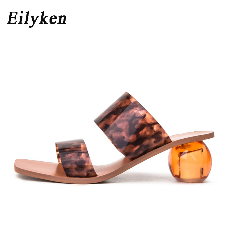 Eilyken Summer Clear PVC Square Toe Ladies Shoes Transparent Crystal Round Ball Heel Slippers Women Leopard Grain Jelly Sandals