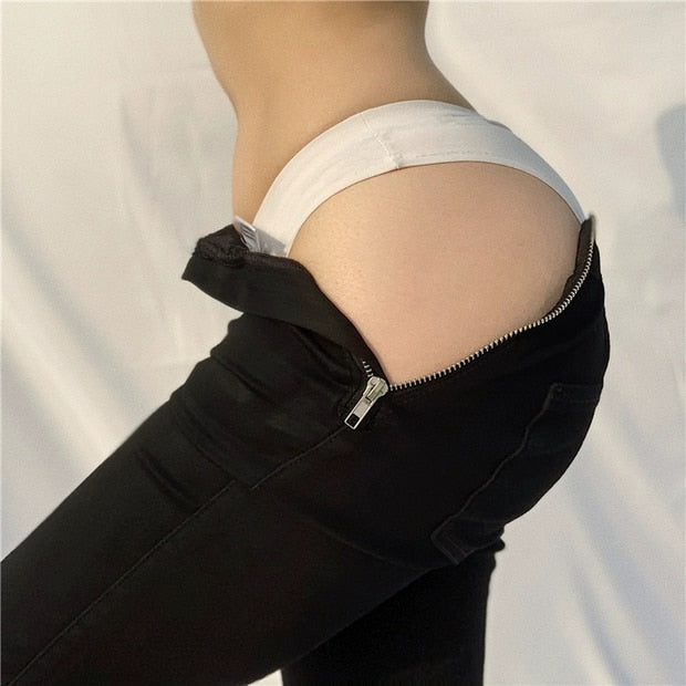 European American Jeans Woman High Waist Feminine Skinny Side Zipper Jeans Solid Color Denim Feet Pants Black 2000s Aesthetic