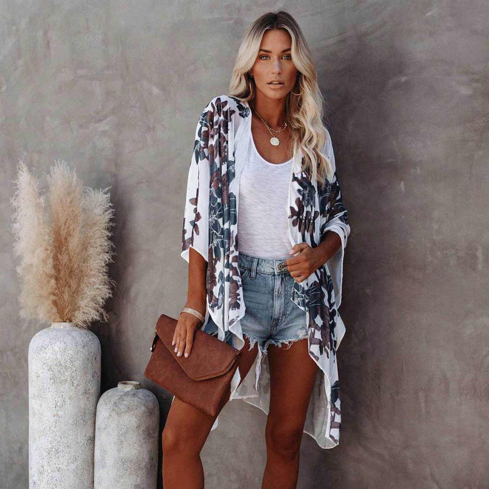 Fashion Kimono Cardigan Blouse Shirt Loose Chiffon Long Tops Summer Casual Ladies Tops Female Women Short Sleeve Blusas Pullover