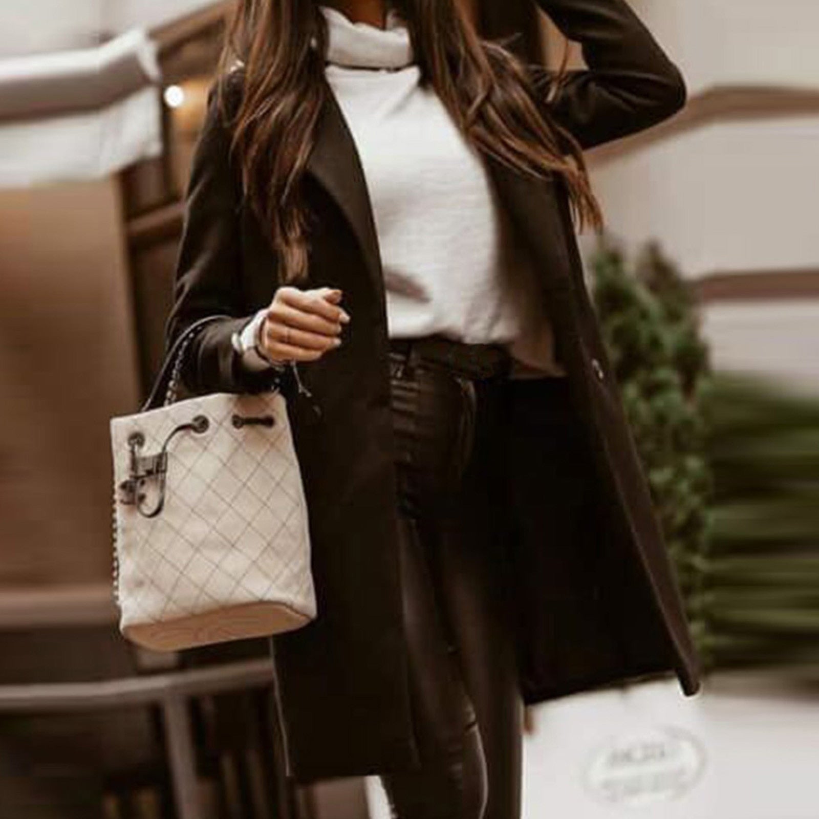 Fashion Lapel Mid-length Jacket Coat Casual Solid Buttons Woolen Warm Coat Streetwear Female Winter Long Sleeve Womens Outerwear