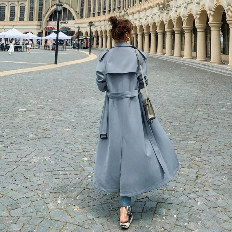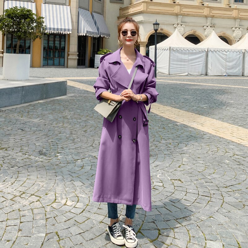 Fashion New Blue Green Purple Long Double-Breasted Women Trench Coat Lady Duster Coat Spring Autumn Outerwear Female Clothes