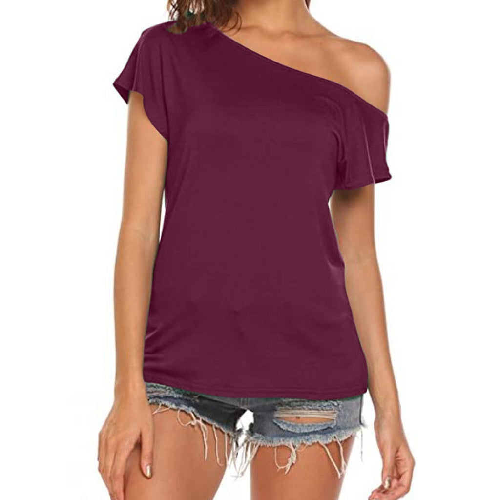 Fashion Off Shoulder T-Shirt Casual Women tshirt Solid Loose Tops Ladies Summer Tops Female Short Sleeve Shirt Blusas Pullover