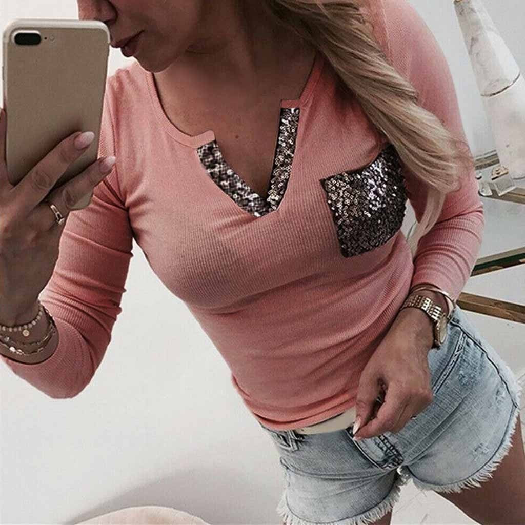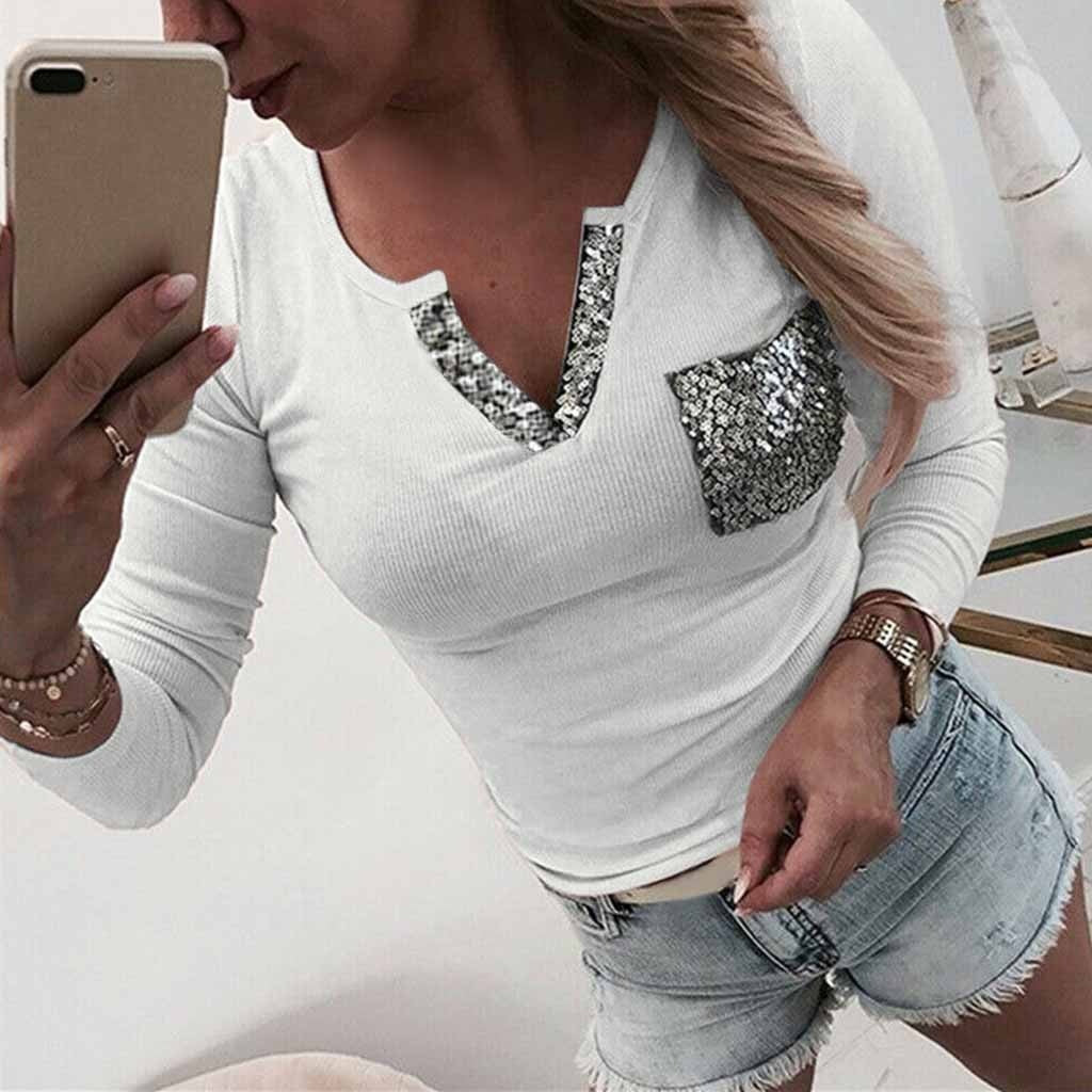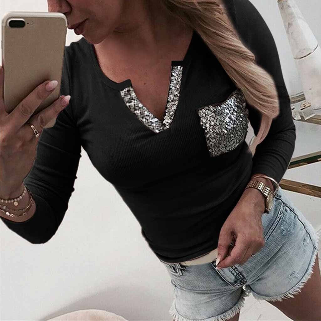Fashion Sequins Knitted Bottom Blouse Casual Autumn Winter Lady Sexy V-Neck Tops Female Women Long Sleeve Shirt Blusas Pullover