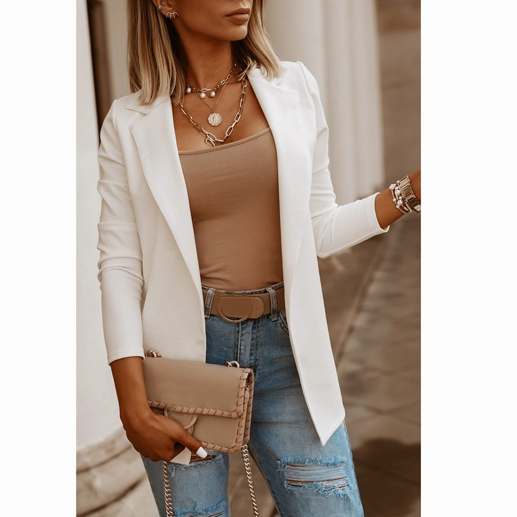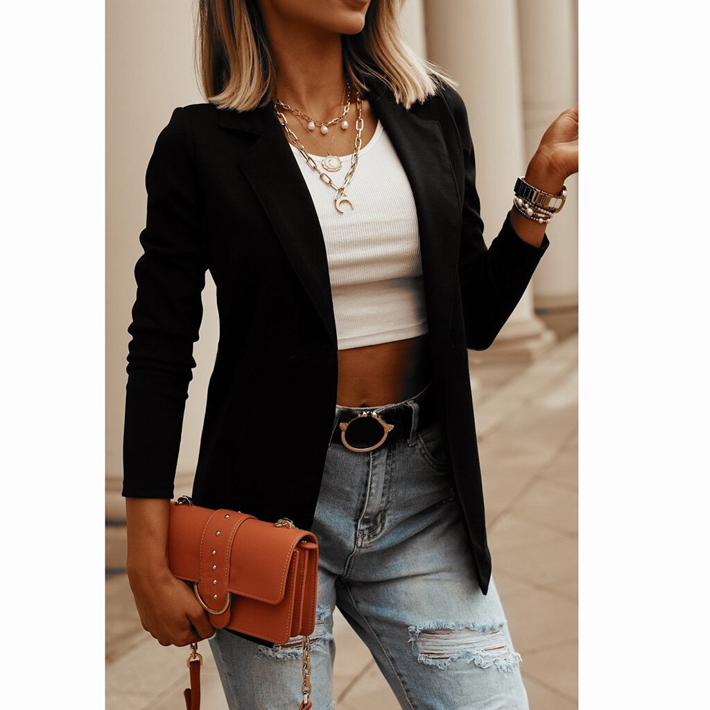 Fashion Solid Office Jacket Casual Ladies Cardigan Turn-Down Collar Loose Coat Female Autumn Winter Long Sleeve Womens Outerwear