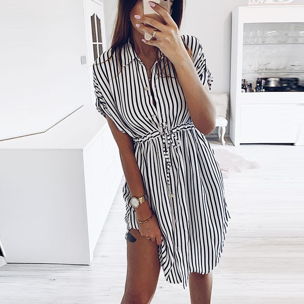 Fashion Striped Bandage Dress Ladies Sexy V-Neck Loose Shirt Dress Sundress Women's Casual Beach Party Dress Vestido de fest