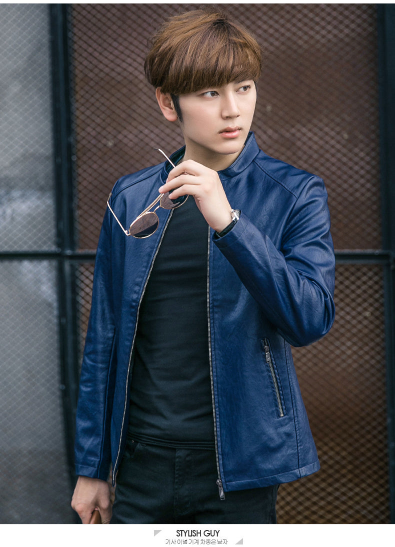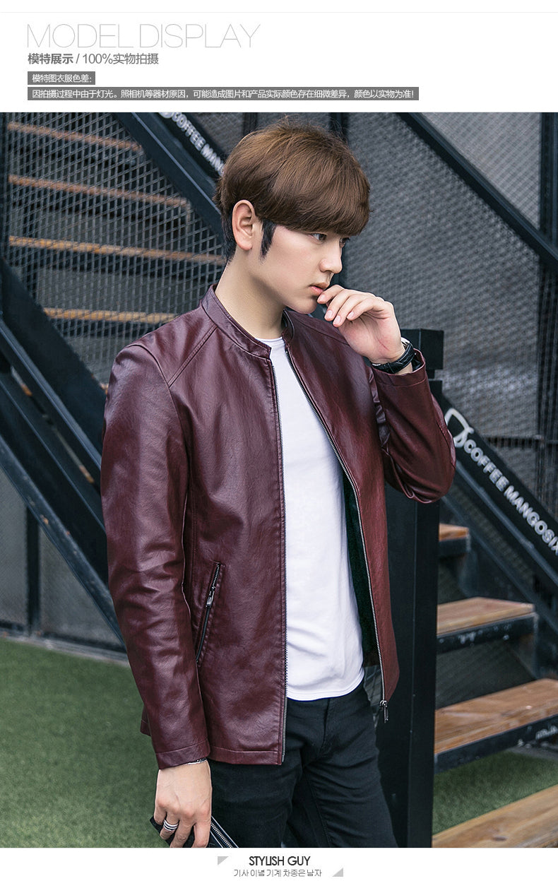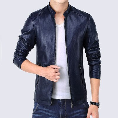 Faux Leather Black Jackets Coat Men Slim Fit Mens Windbreaker Jackets Zipper Pocket Stand Collar British Vintage Outerwear