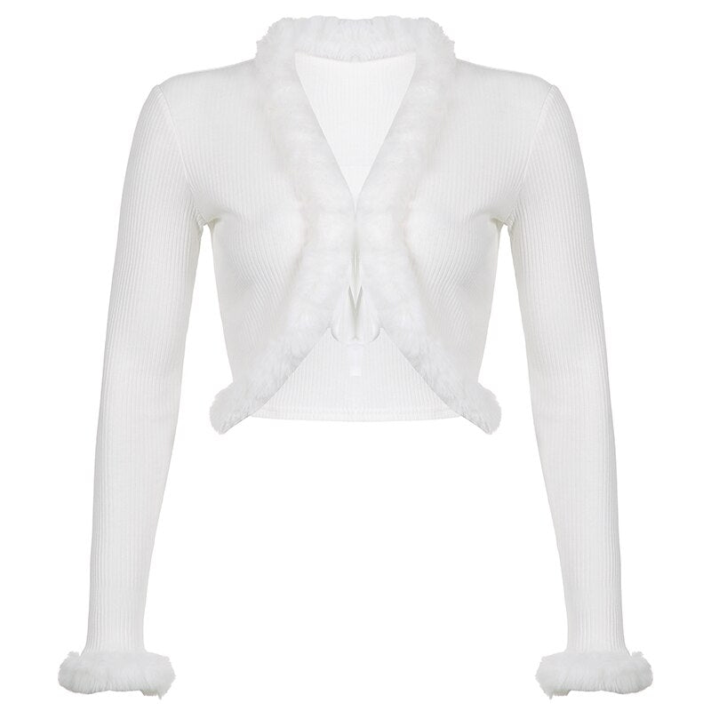 Fur Patchwork Y2K Knit Cardigans Lace Up Solid Autumn Vintage Grunge Clothes Streetwear Fashion Korean Knitwears Cuteandpsycho