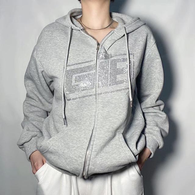 Gothic Rhinestone Spider Web Zipper Hoodie Women Y2K Streetwear Loose Hooded Jacket Couple Harajuku Punk Oversized Sweatshirts