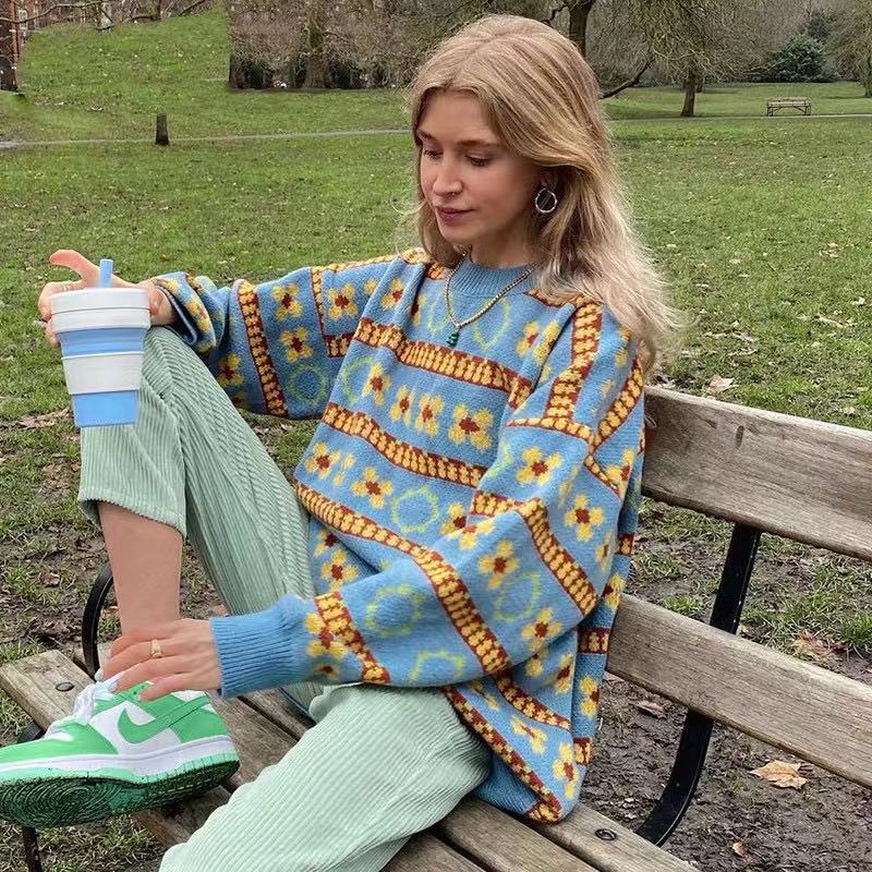 Harajuku Floral Print Y2K Knit Sweaters Autumn Crewneck Cute Retro Pullovers Fashion Vintage Cute Knitwear Cloth Cuteandpsycho