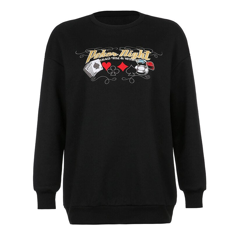 Harajuku Letter Embroidery Oversized Sweatshirts Women Streetwear Vintage Retro Casual y2k Tops Crewneck 90s Shirt Cuteandpsycho
