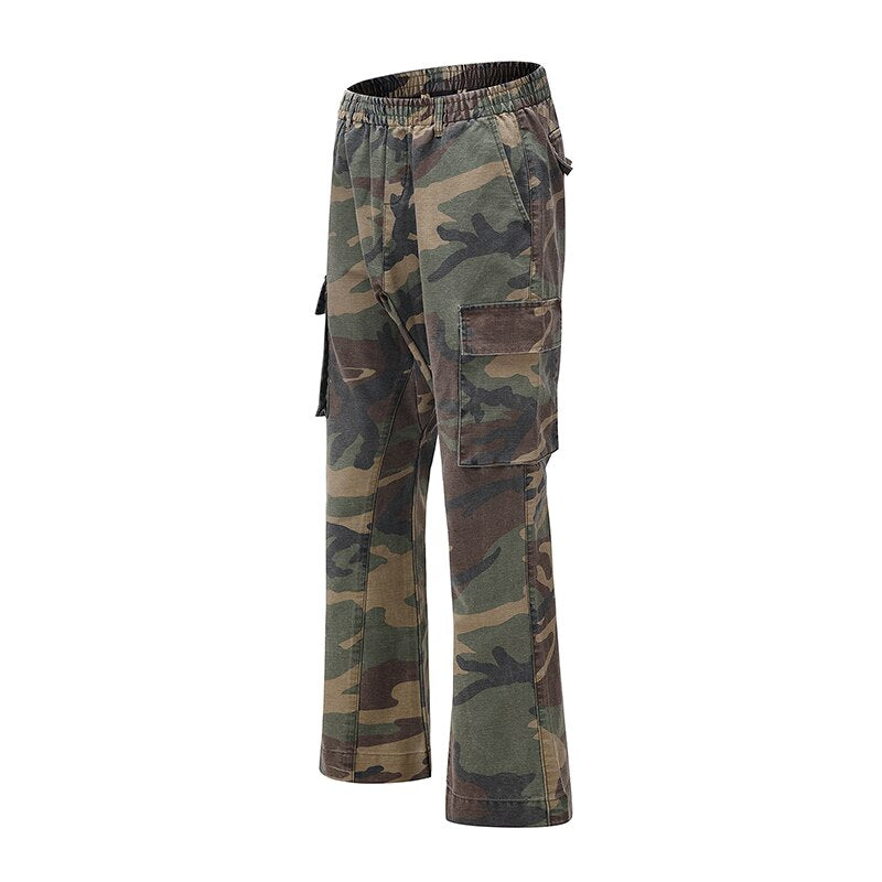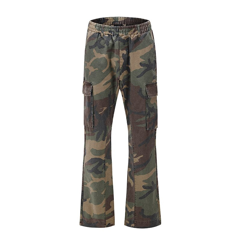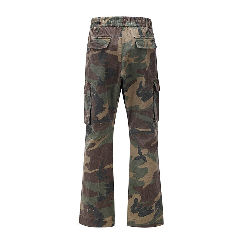 Harajuku Men's Overalls Camouflage Casual Trumpet Trousers Loose Multi-pocket Streetwear Denim Pants Hip Hop Flare Pants