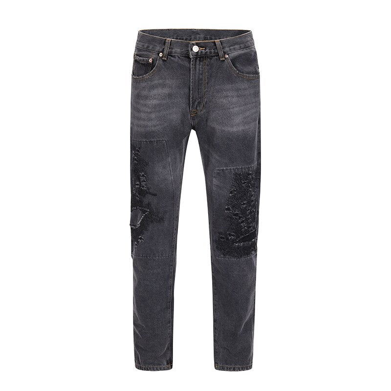 Heavy Industry Electric Embroidery Burning Washed Jeans Mens and Womens Patchwork Streetwear Harajuku Oversize Denim Trousers