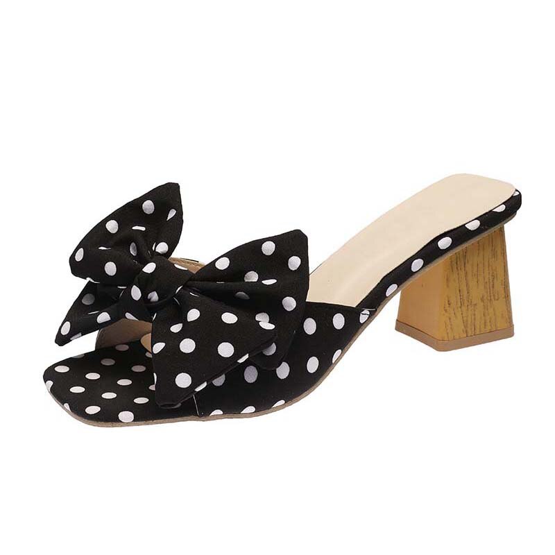 High Heels Women Bow Peep Toe Ladies Pumps Thick Heel Fashion High Heels Shoes For Women Polka Dot Sweet Female Pumps Plus Size