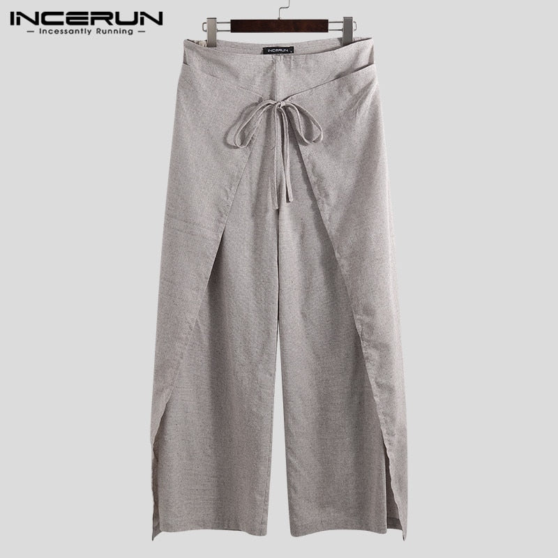 INCERUN Men Thai Fisherman Pants Loose Vintage Solid Color Women Pants 2021 Streetwear Joggers Wide Leg Pants Men Trousers S-5XL