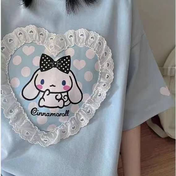 Kawaii Harajuku T Shirt Sky Blue Japan Print Loose Short Sleeve T Shirt Anime Tops Women Fashion Clothing T Shirt for Girl