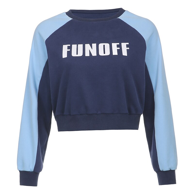 Letter Print Patchwork y2k Sweatshirts Women Autumn Crewneck Casual Pullovers Basic Cotton Harajuku Shirts Fashion Cuteandpsycho