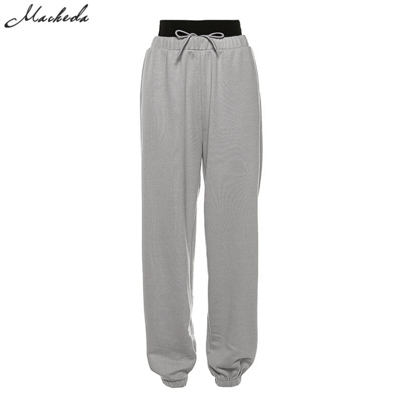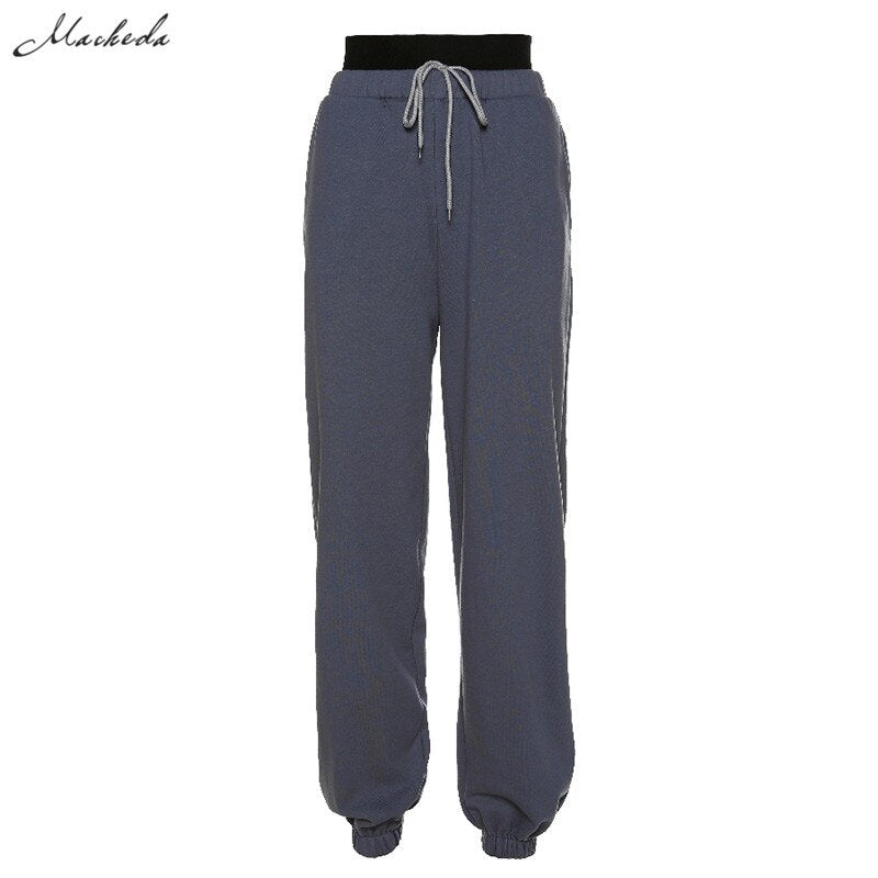 macheda 2020 Women new cotton high waist patchwork solid loose Casual Haroun jogging pants fashion street Lace-up Trousers mujer
