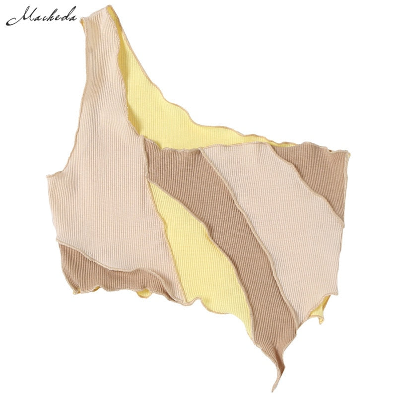 Macheda Fashion Rib Knitting Casual Crop Top Women Sleeveless Patchwork Slim One Shoulder Clothing Street Lady Tank Top 2020 New