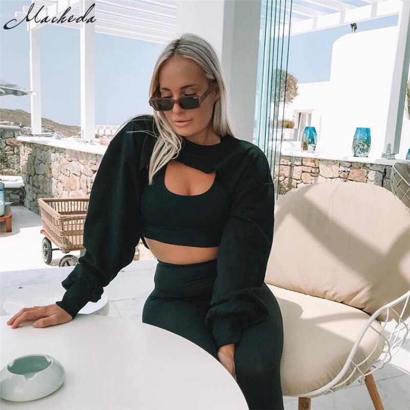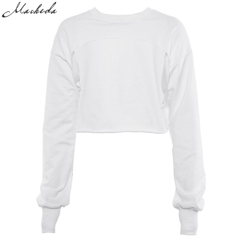 Macheda Fashion Sexy Women Sweatshirt 2018 New O-Neck Solid Crop Long Sleeve Jumper Pullover Coat Casual Sweatshirt Top
