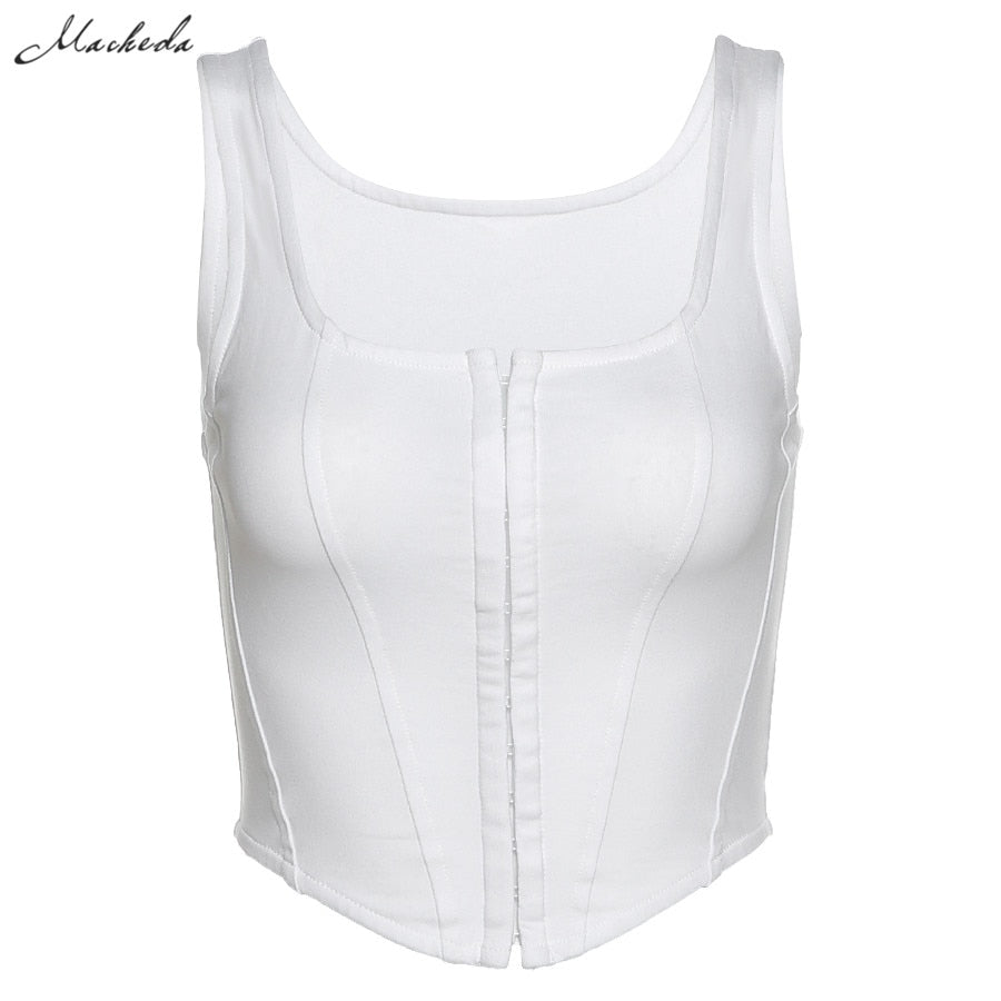 Macheda Solid Fashionable Sexy Slim Vest Cropped Top Women Casual Sleeveless Streetwear Lady White Black Tank Top 2021 New