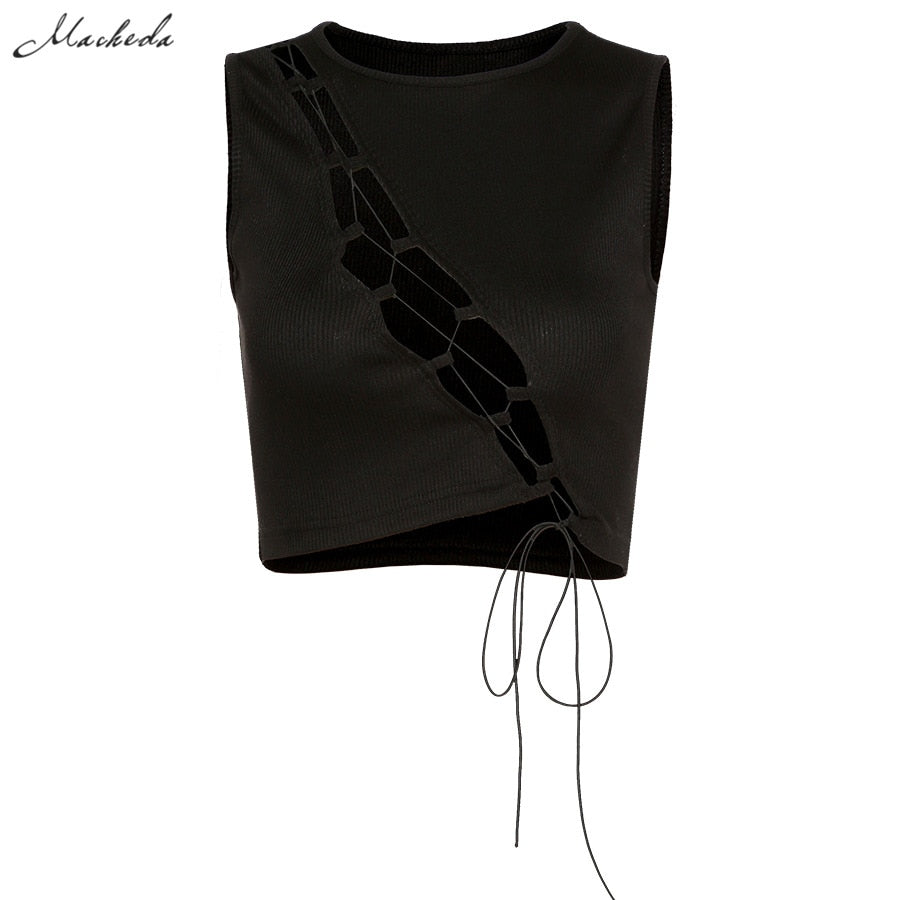 Macheda spring Black Sexy Hollow Out Tank Top Women Slim Sleeveless Lace Up Clothing Street Lady Solid Cropped Top 2021 New