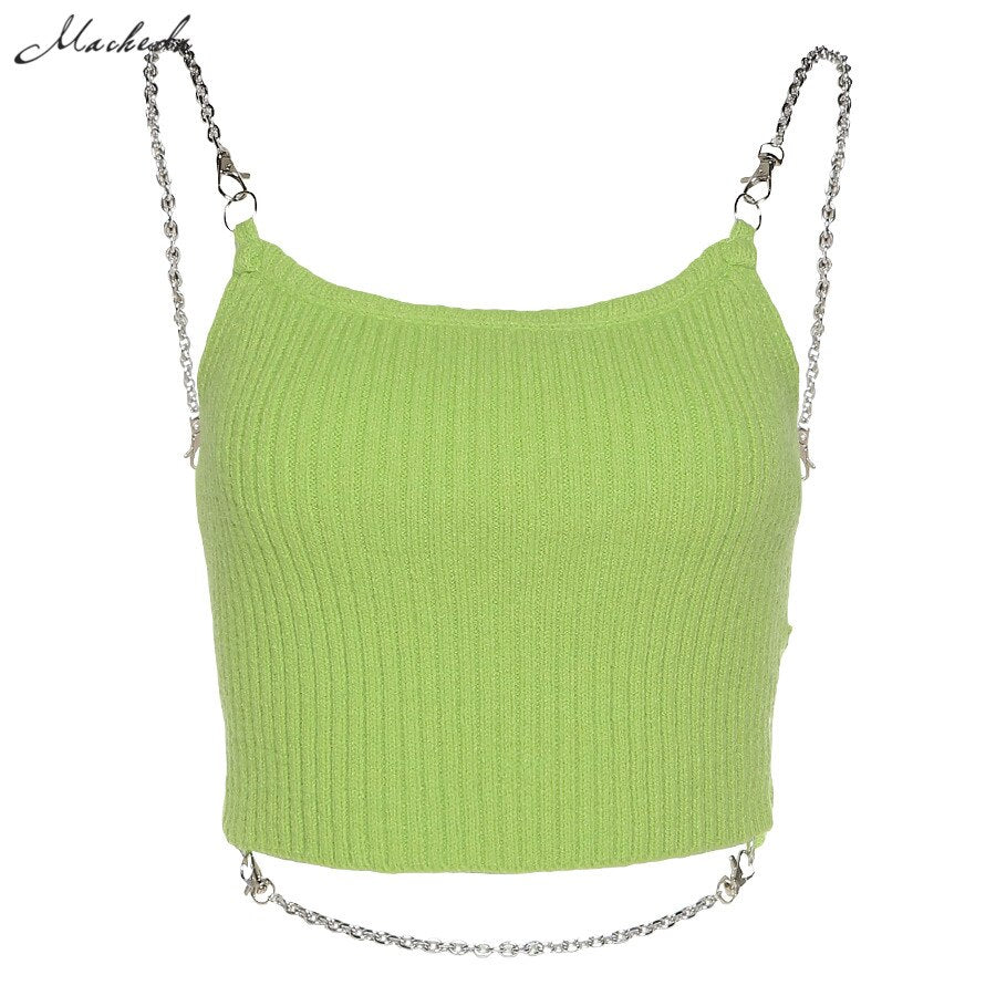 Macheda Spring Green Fashion Tank Top Women Knitting Sleeveless Backless Sexy Slim Clothing Y2K Lady Solid Crop Top 2021 New