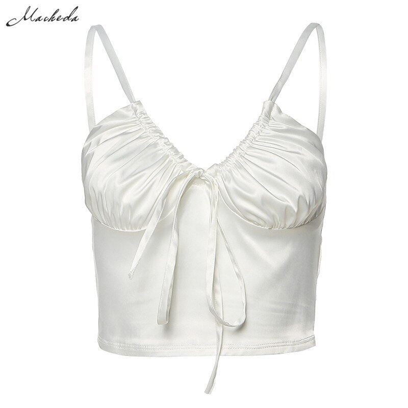Macheda Women Casual Sleeveless Strappy Vest Top V-neck Tanks Ladies Solid Color Tops Spring Summer Party Streetwear 2020 New