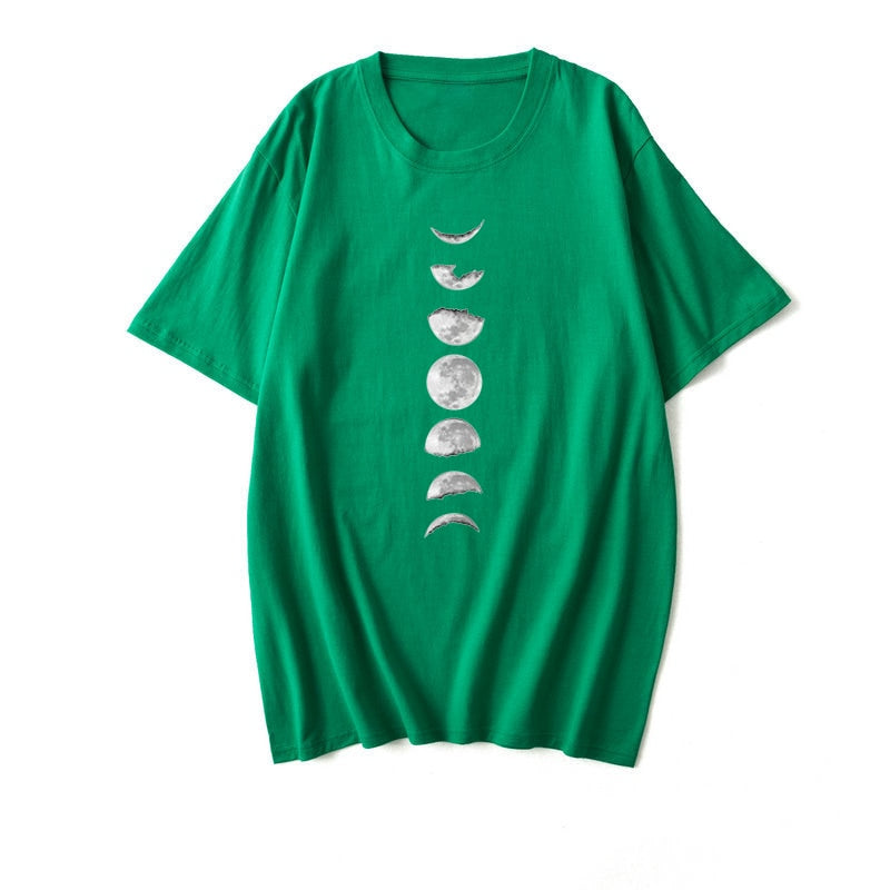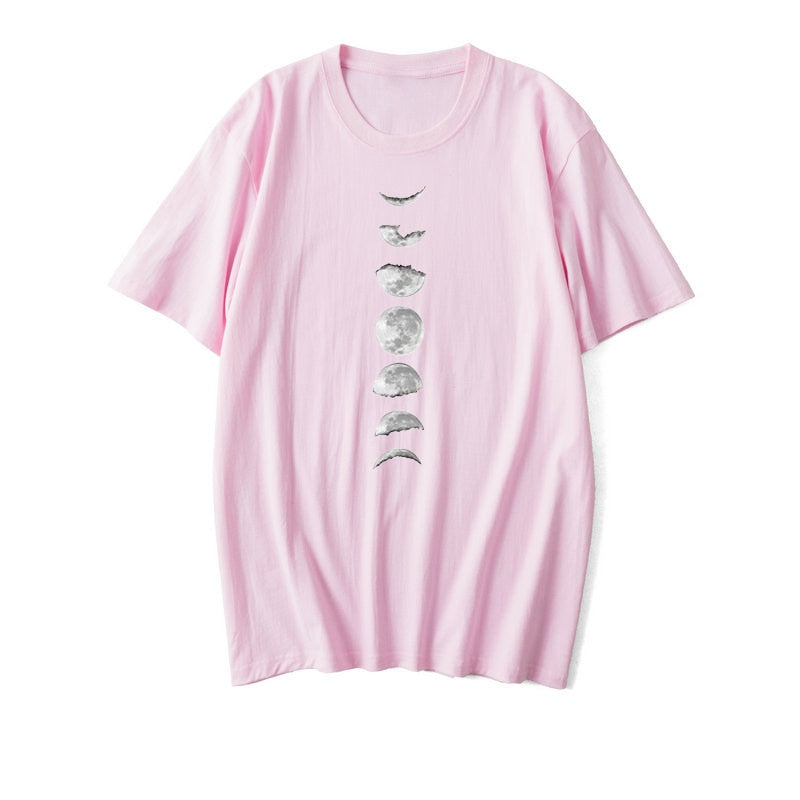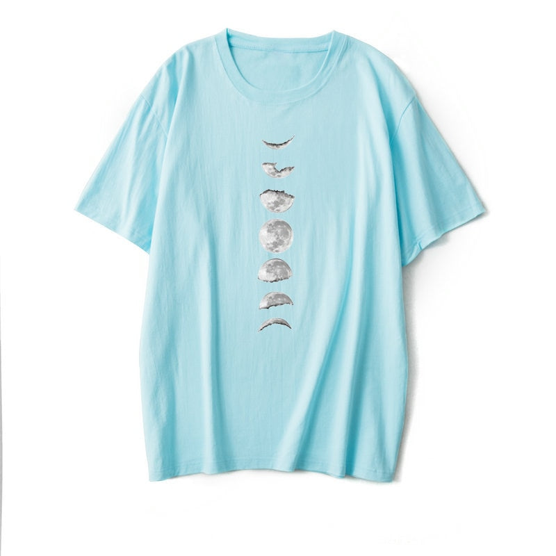Moon Print Cotton Summer T Shirt Women O Neck Graphic Tees Casual Plus Size 5XL T-shirt Womens Aesthetic Shirts Tops Free Ship