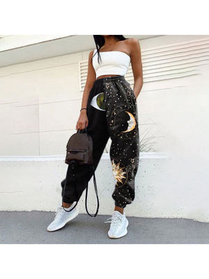 Pants Women Skull Print High Waist Elastic Wide Leg Pants Streetwear Woman Baggy Sweatpants Harajuku Loose Joggers Trousers